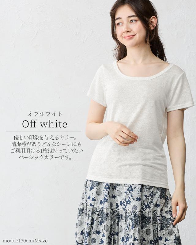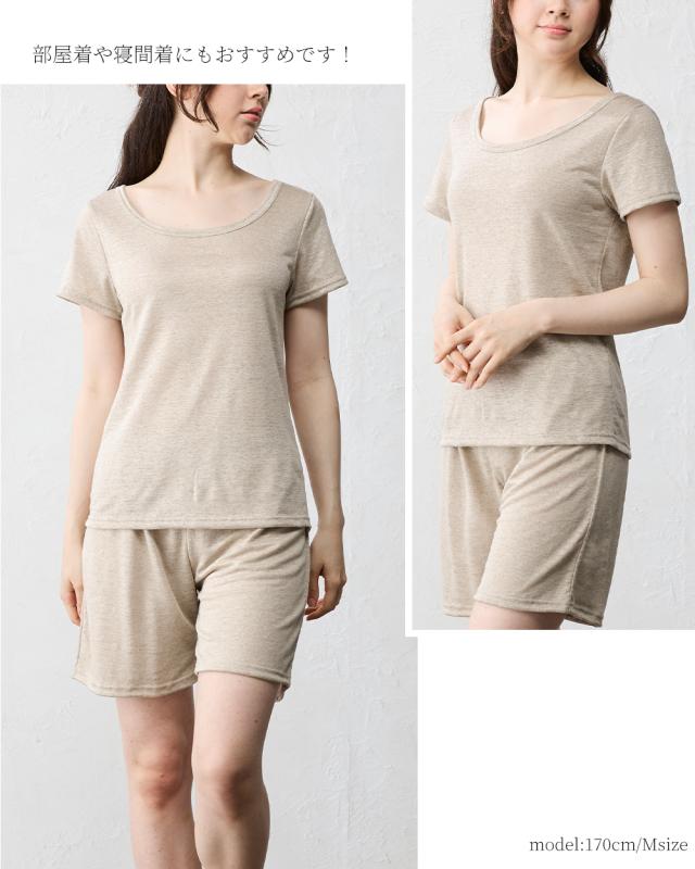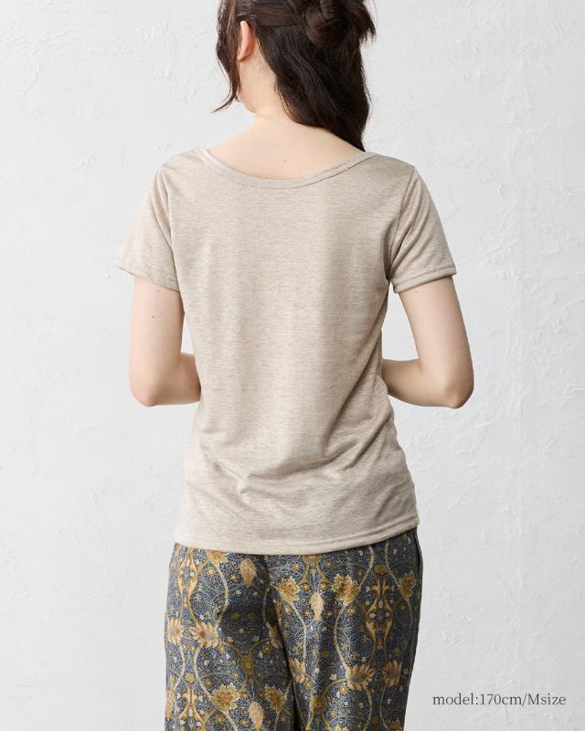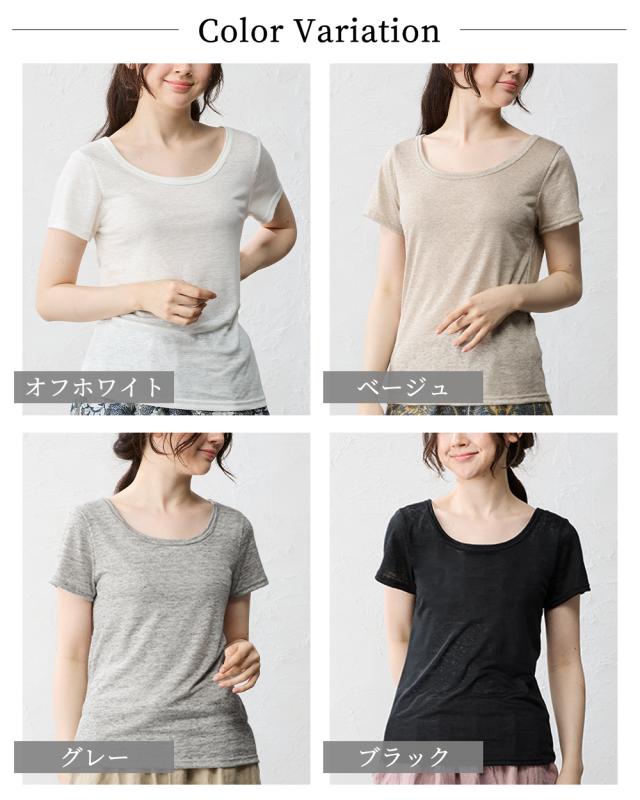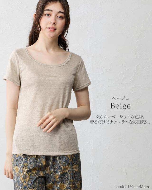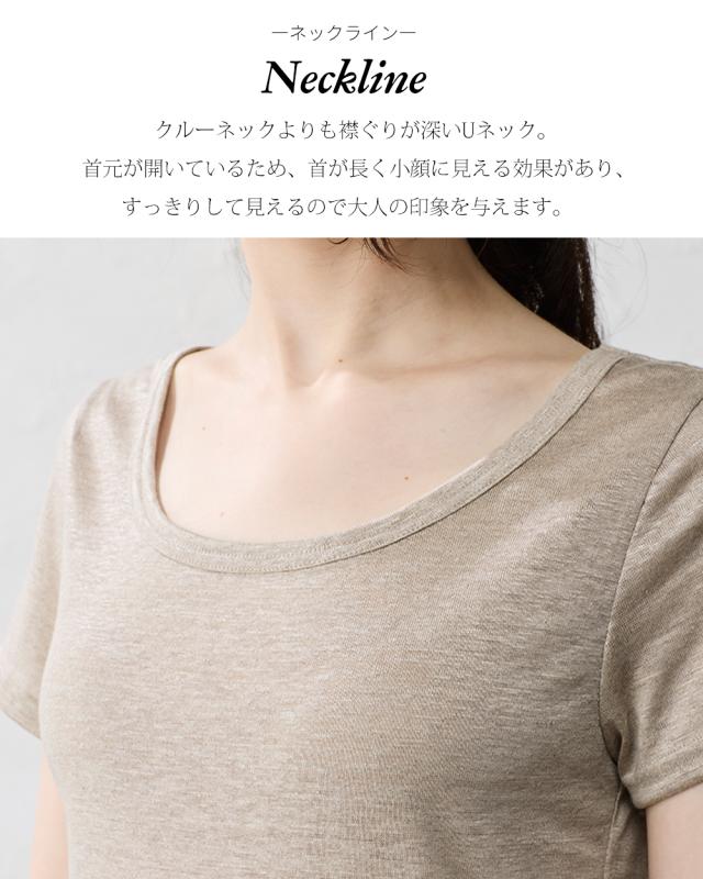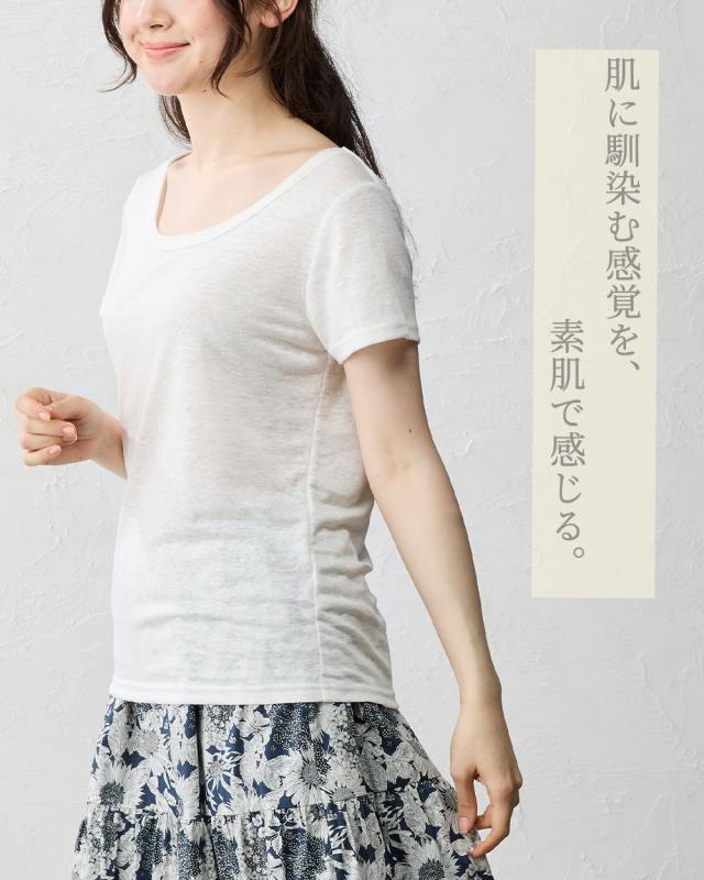 【日本製】いつも快適 蒸れない 麻 リネン ちくちくしない 半袖Tシャツ レディース トップス カットソー 接触冷感 吸水速乾 インナー 重ね着 部屋着 寝間着 Uネック 五分袖 無地 シンプル ベーシック 洗える ゆったり やすらぎリネン 40代 50代 60代 ファッション 春 夏 秋