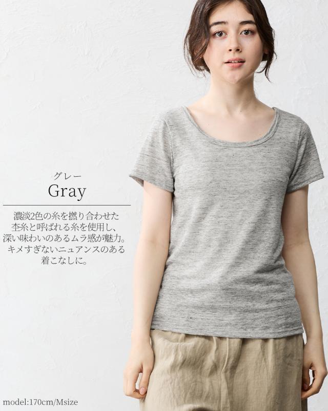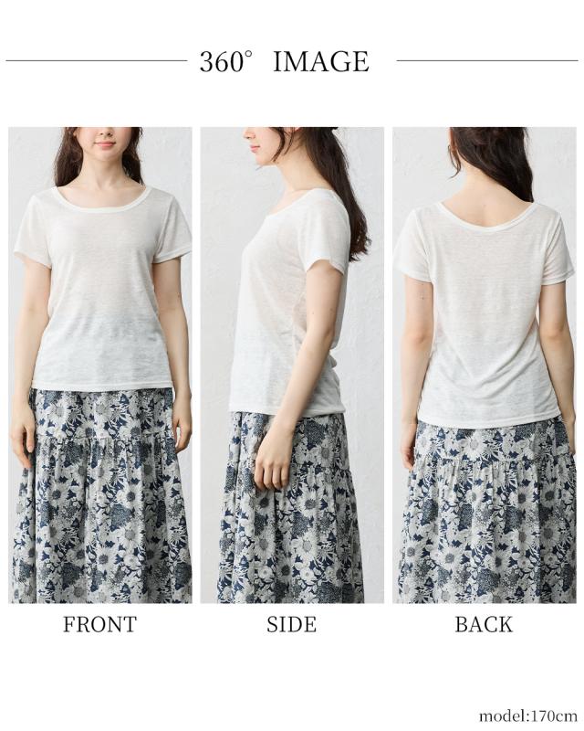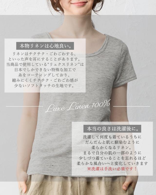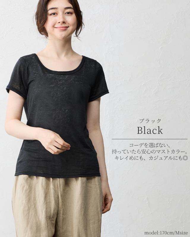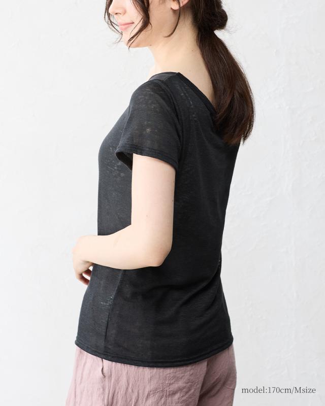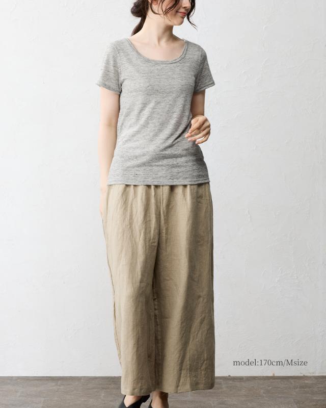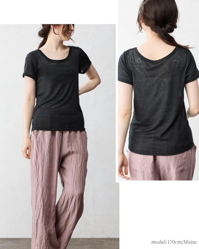 チクチクしない柔らかく風通しの良いリネン天竺を使用した半袖Tシャツ。