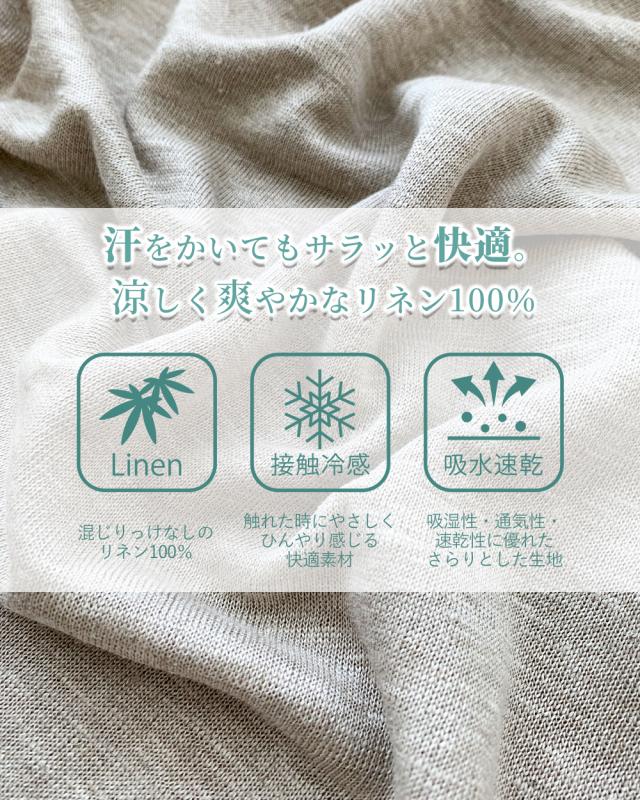 暑い日も快適に過ごせるリネン素材は汗をかいてもずっとサラサラで快適です。