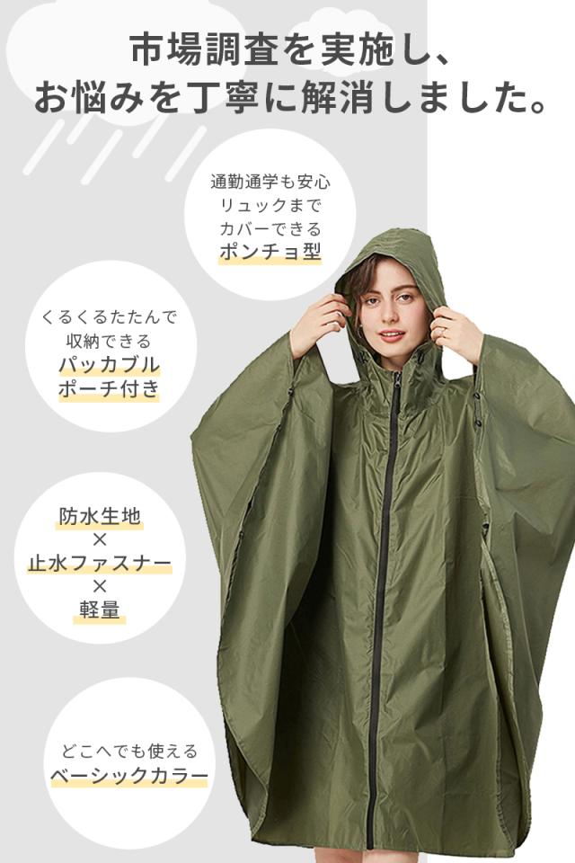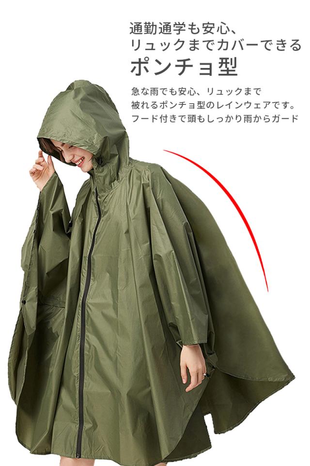 【通勤通学も安心、リュックまでカバーできるポンチョ型】