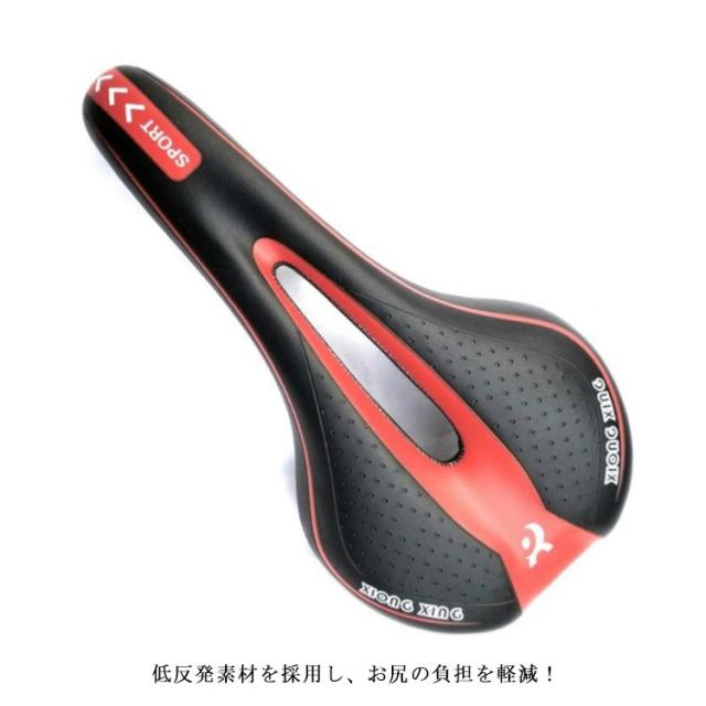 自転車サドル 自転車 サドル フラットタイプ スポーティー 交換 クロスバイク クッション 肉厚 低反発 ロードバイク 自転車サドル マウンテンバイク 痛くない 衝撃吸収 通気性 穴開き サイクリング 圧迫軽減 ロングノーズ フィット クッション センターホール
