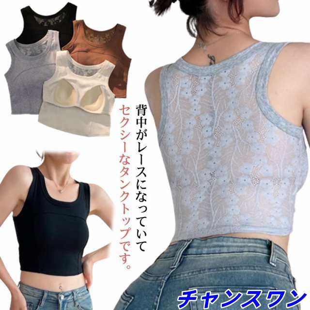 送料無料 カップ付き タンクトップ ブラトップ バックレース キャミソール ラウンドネック 背中レース タンク レースタンクトップ シンプル レイヤード 重ね着 花柄レース パッド付き 肌着 下着 通気性 速乾 ストレッチ 春 夏