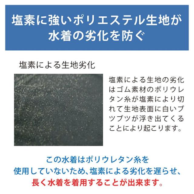 プール内の塩素に弱いと言われているポリウレタン糸を使用していない為塩素による劣化を遅らせることが可能になります。