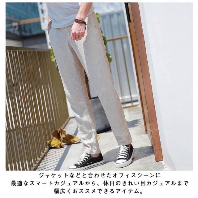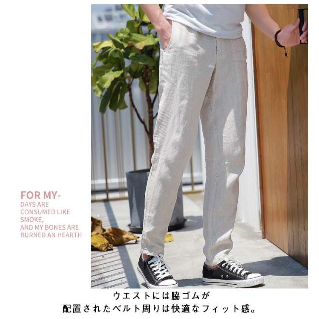 リネン100% テーパードパンツ リネンパンツ メンズ スラックス 麻100% 涼しい 春 夏 秋 メンズパンツ カジュアルパンツ ロングパンツ 麻パンツ ラウンジパンツ 清涼感 通気性 快適 薄手 春服 夏物 ゴムウエスト イージーパンツ