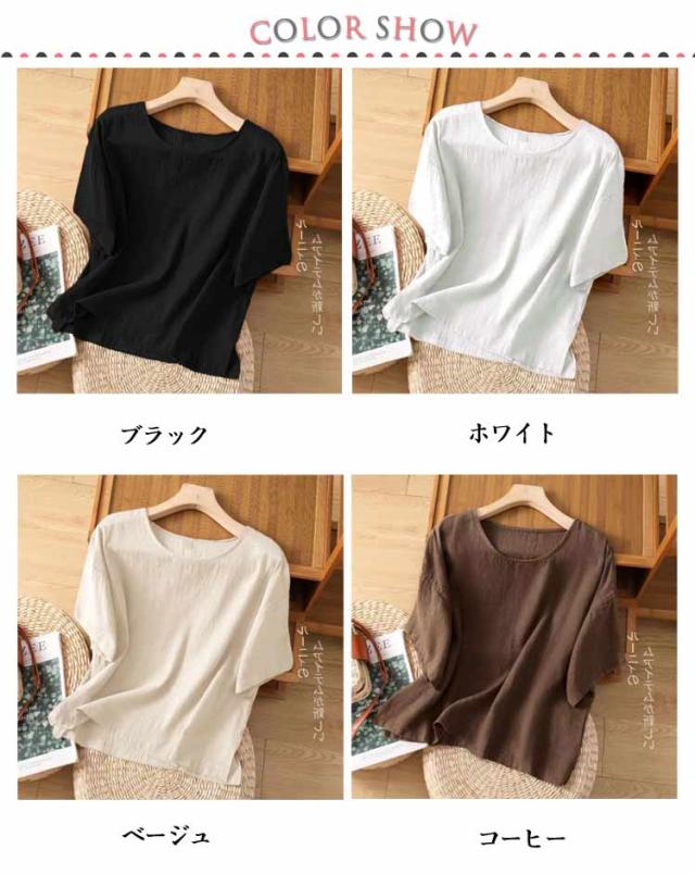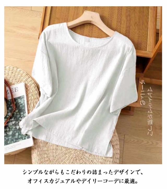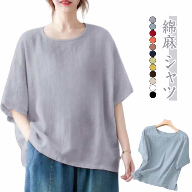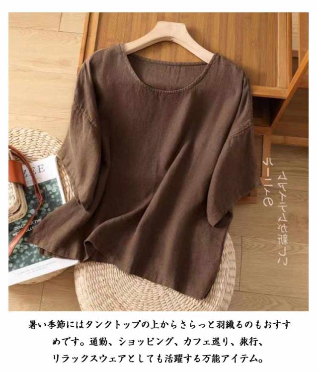 ブラウス シャツ レディース トップス 半袖 シャツブラウス 春 夏 ラウンドネック 綿麻 体型カバー 部屋着 コットンリネン 軽量 プルオーバー ルームウェア 大きいサイズ ゆったり 無地 大きいサイズ チュニック カジュアル おしゃれ 散歩 通勤