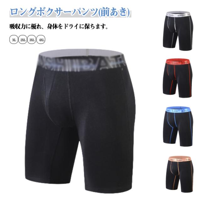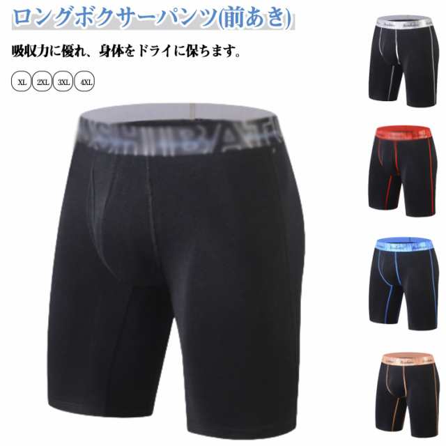 股擦れ 対策 ロングボクサーパンツ 2枚セット メンズ 前あき ロングトランクス 綿 コットン シンプル 紳士 男性 下着 肌着 インナー パンツ 前開き