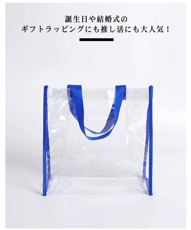 | 幅広い年代層から愛される人気なおしゃれクリアバッグ。 クリアな質感だからこそどんな色のお洋服にも合う万能な素材感。 いつものコーデをワンランクおしゃれにしてくれます。 幅広持ち手なので、安定感があって持ちやすい。 重たい荷物を入れても、腕に食い込みにくいので長時間のお出かけだってらくちん。 誕生日や結婚式のギフトラッピングにも推し活にも大人気! | |