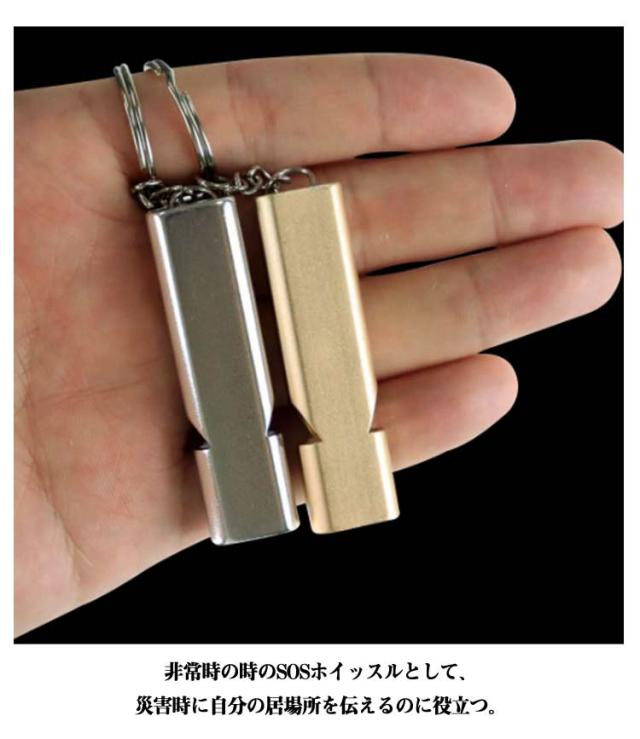 | 【7個セット】【大音量ホイッスル】 大音量金属製のホイッスルです。遠くまで聞こえる高音の音程になります。 非常時の時のSOSホイッスルとして、災害時に自分の居場所を伝えるのに役立つ。 夜道で危険な目に遭ったときに助けを呼ぶこともでき、防犯用としても活用可能。 防災バック、玄関、ベッドなどの常備用として、笛自体を複数個用意しておくのもおすすめです。 アルミ合金製なので錆に強く軽い!雨に濡れても音が鳴ります。 | |