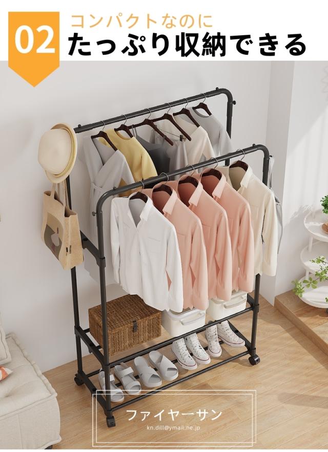 ハンガーラック おしゃれ 頑丈 パイプハンガー コート掛け キャスター付き パイプハンガー 衣類収納 洋服掛けラック 子供 洋服収納 洗濯物 室内干し 洗濯物落ち防止対策 梅雨対策