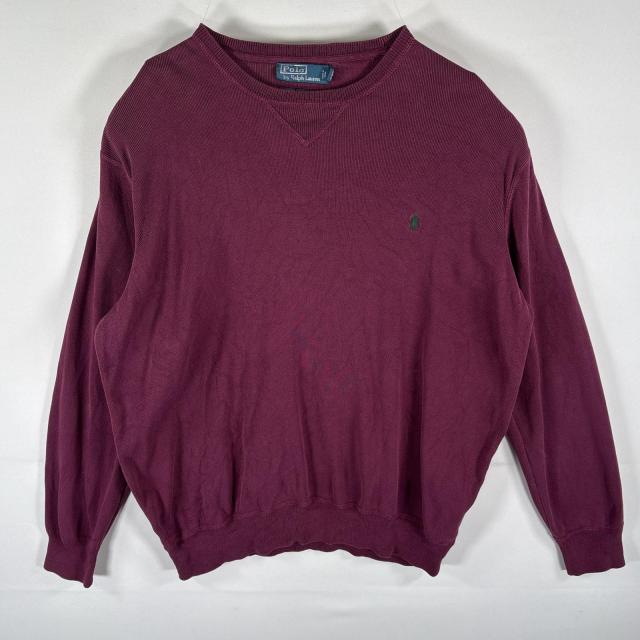 古着 ポロ・ラルフローレン POLO RALPH LAUREN スウェット トレーナー クルーネック 前Vガゼット ワンポイント XLT ワインレッド系