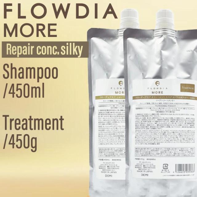 【SET】 デミ フローディア モア シャンプー&トリートメント リペアコンク シルキー 450ml/450g (DEMI FROWDIA MORE cosme cosmetics shampoo コスメティクス 保湿 乾燥 ツヤ髪 ギフト 送料無料 毛穴 洗浄)