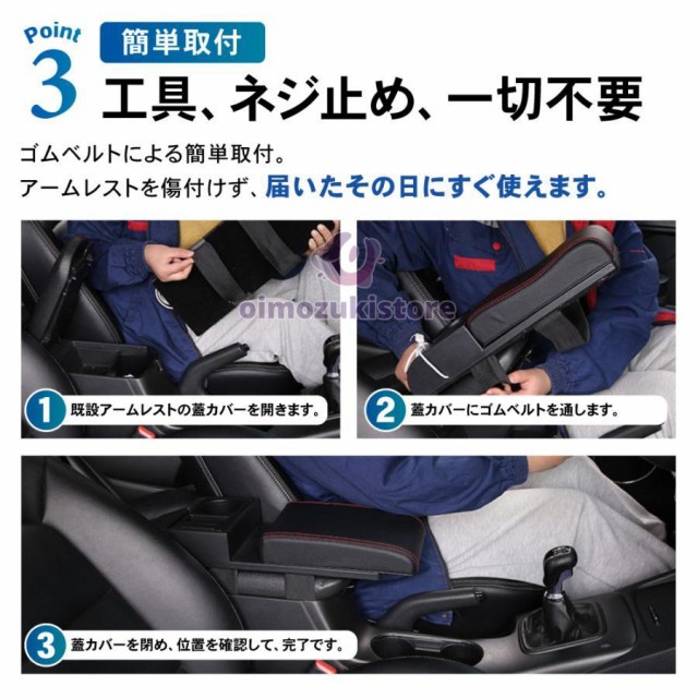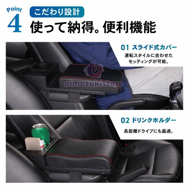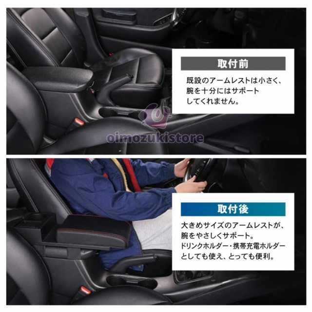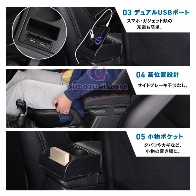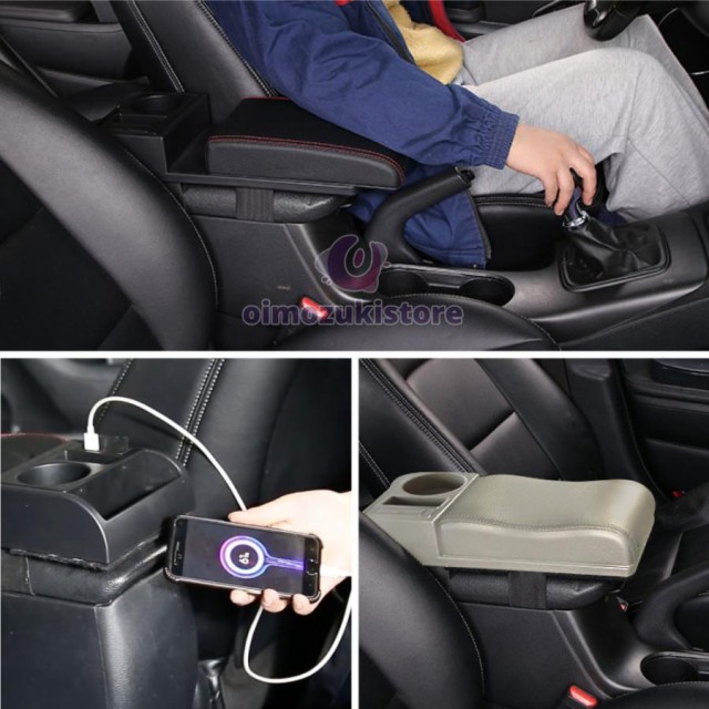 汎用 アームレスト コンソールボックス 肘置き スライド USB ポート ドリンクホルダー 小物入れ センターコンソール 車用品 内装