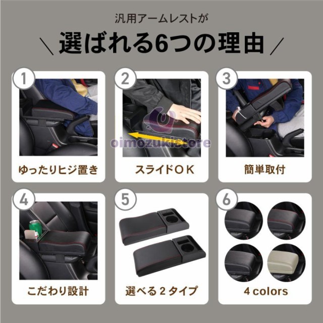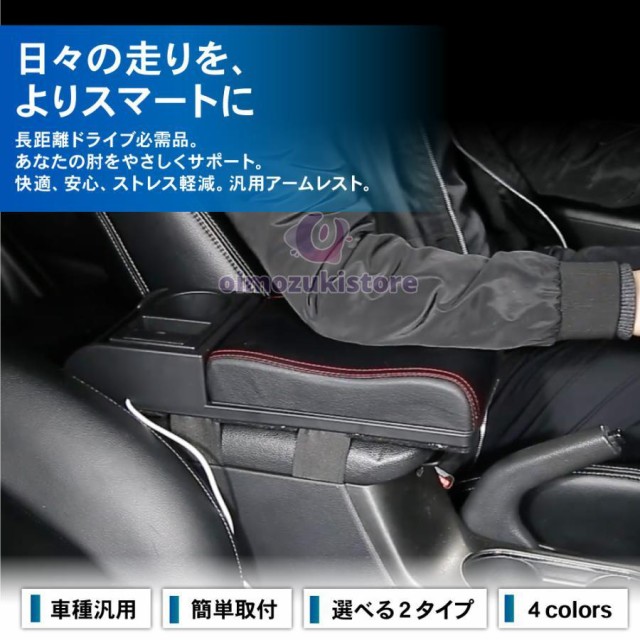 【取付簡単】 汎用 アームレスト コンソールボックス 肘置き スライド USB ポート ドリンクホルダー 小物入れ センターコンソール 車用品 内装 パーツ インテリア 普通車 軽自動車 選べる 2タイプ 3カラー