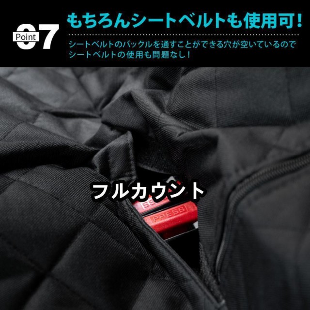 様々なタイプの車種にご使用いただけて、シートベルトのバックルを通す事ができる穴が空いているのでシートベルトの使用も問題なし。