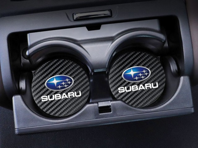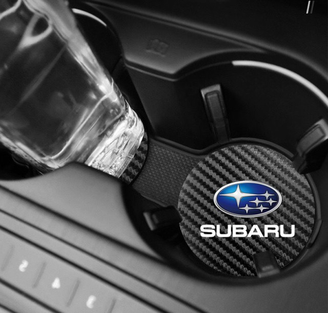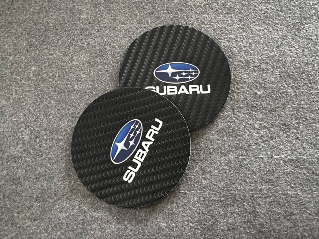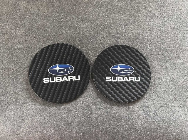 ◆スバル SUBARU◆炭素繊維 カップパッド ドリンクホルダー 装飾 ロゴ コースター ホルダー 直径7cm 2枚セット aaad qtm