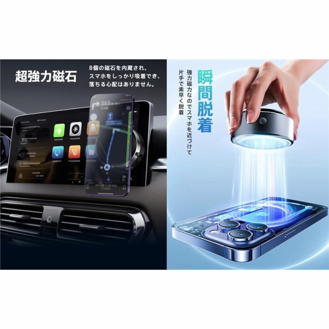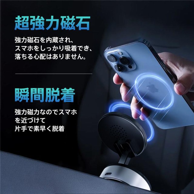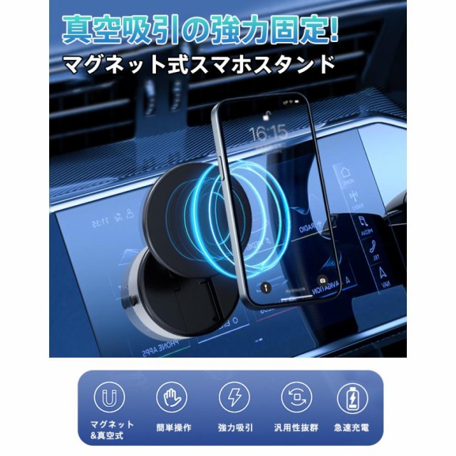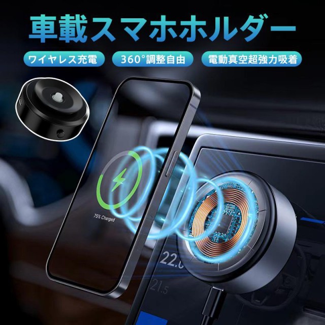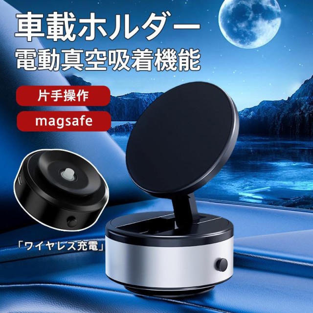 スマホホルダー 車載ホルダー 車載充電器 スマホスタンド ワイヤレス充電器 瞬間吸付 電動真空吸着機能 片手操作 超強吸着力 magsafe 吸盤式