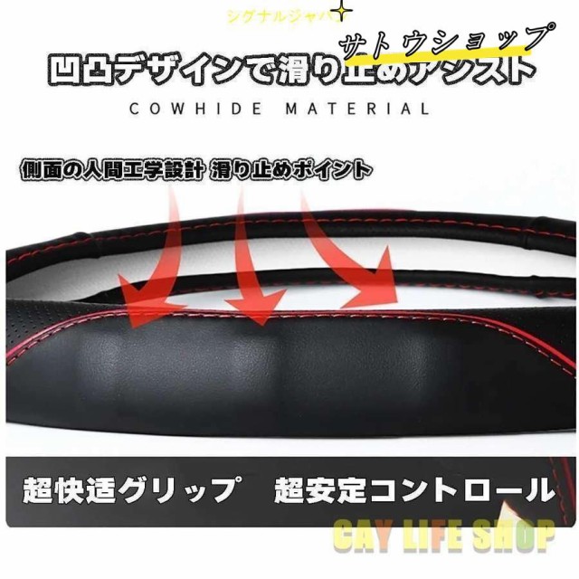 トヨタ ステアリングカバー ハンドルカバー ヤリス ルーミー ライズ 本革 内装品 高級 牛革 メッシュデザイン 38CM