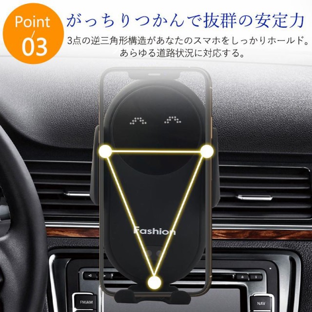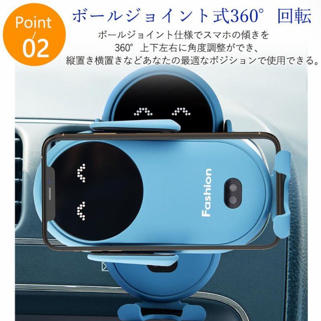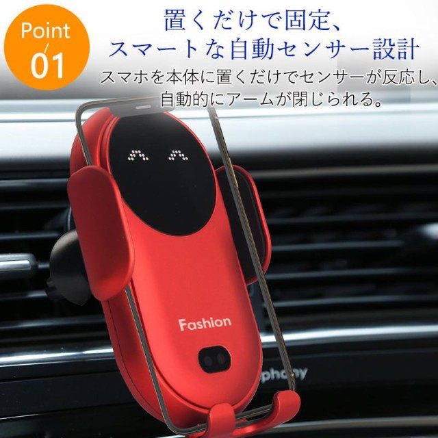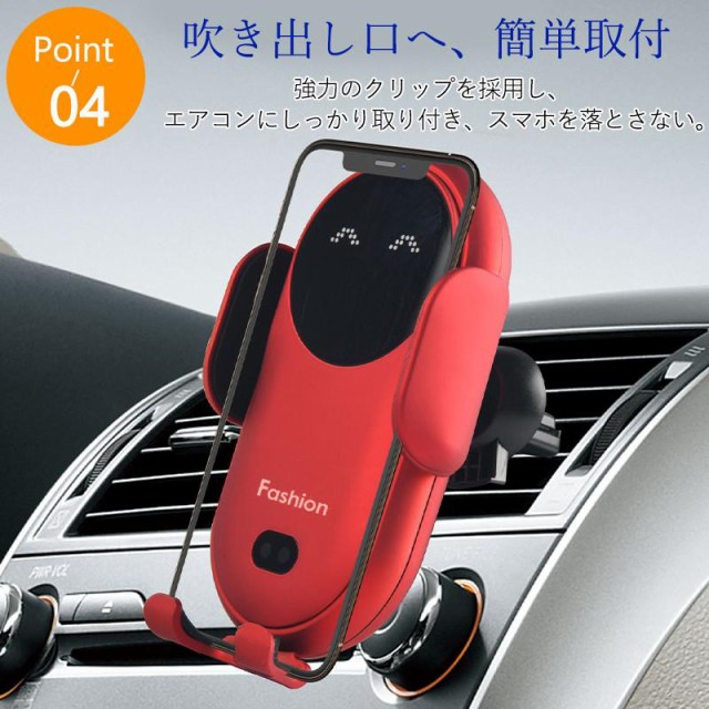 スマホホルダー 車載ホルダー ワイヤレス充電器 車 車載 車用 充電式 自動開閉 クリップ 急速充電 充電ホルダー iPhone アンドロイド おしゃれ 可愛い