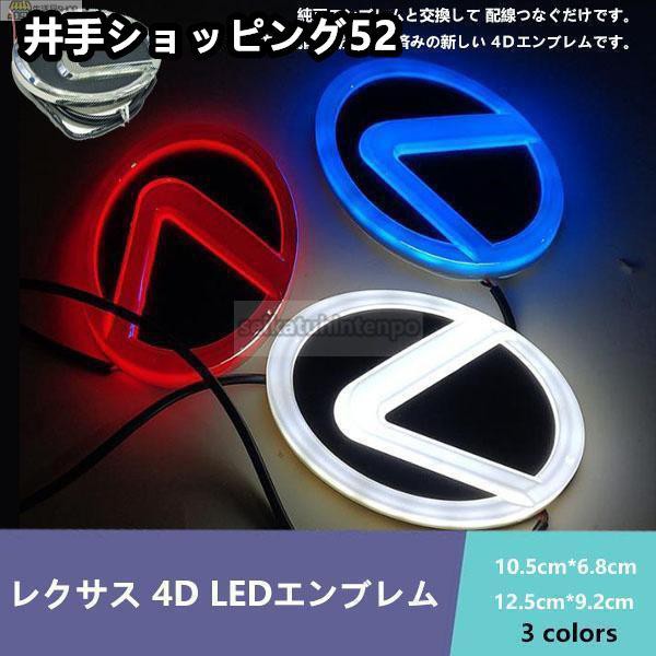レクサス LEXUS 4D LEDエンブレム 交換式 12.5cm*9cm 10.5cm*7.5cm サイズ、三色選択