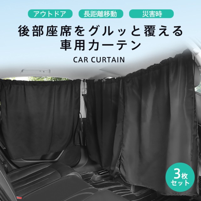 車用カーテン 車内カーテン 3枚セット 日除け サンシェード 収納袋付 UVカット 着脱簡単 間仕切り 遮光カーテン 目隠し アウトドア 車中泊 遮光