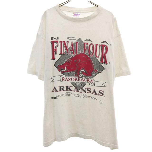 トレンチ 90s USA製 オールド NCAA アーカンソー・レイザーバックス 半袖 Tシャツ XL グレー TRENCH シングルステッチ バスケットボール メンズ