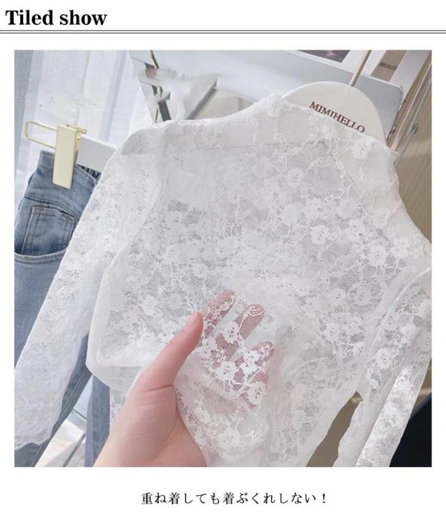 シースルー 花柄レース 透け感 チュール トップス キッズ インナー 総レース ストレッチ おしゃれ ブラウス トップス 子供服 レース 女の子 日焼け止め カットソー プルオーバー UVカット Tシャツ 女の子 かわいい 90 100 110 120 130 140 150cm 春夏