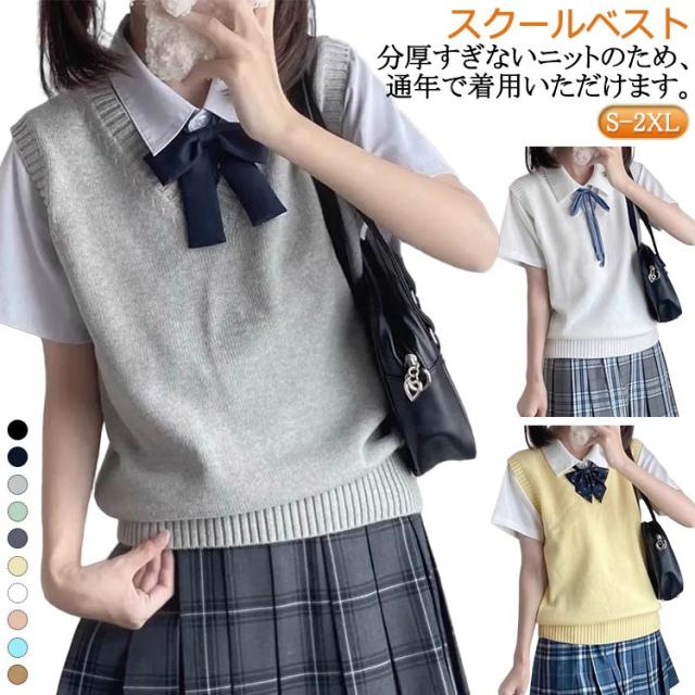 女子 入学 スクールベスト 高校 ベスト 入学 スクール ベスト 学生 中学 通学 カジュアル Vネック ニット 通学 制服 春夏 通年 秋冬 女子高生 学生服 無地 コスプレ 紺色 入学式 卒業式 仮装 発表会 文化祭