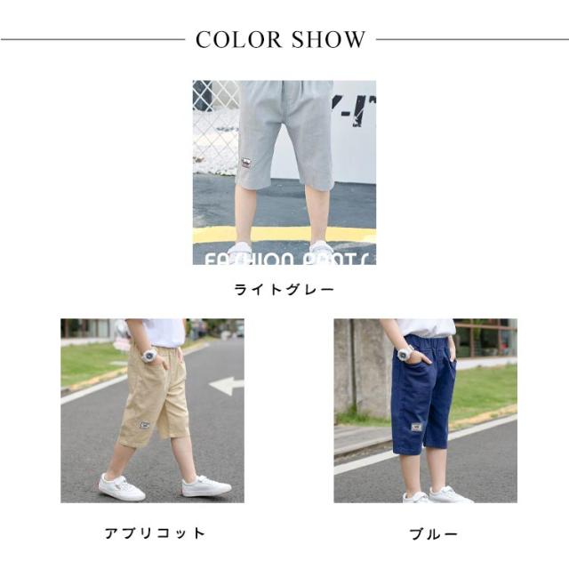 男の子 キッズ 七分丈 クロップド ショート ハーフ 綿混 薄手 カジュアル ゆったり ウエストゴム 無地 ボトムス 子供服 ジュニア 小学生 中学生 膝下 クロップド ズボン 夏 シンプル 通学 お出かけ 110-170