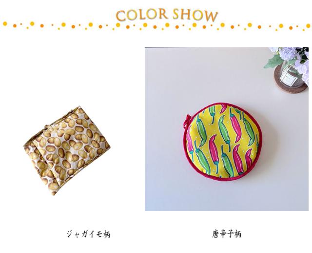 | サイズについての説明 | ジャガイモ柄:19*24cm/ 唐辛子柄:直径24cm/ ※サイズ表の実寸法は商品によって1-3cm程度の誤差がある場合がございます。 |
