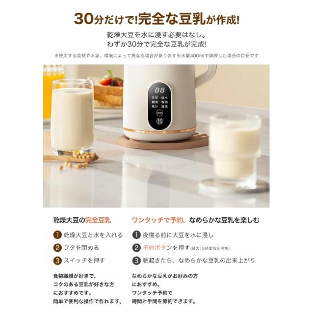 たった30分で完成!毎朝手作り豆乳習慣♪ 簡単操作&自動洗浄で面倒知らず 乾燥大豆からすぐ作れる全自動豆乳メーカー 自宅で手軽に”大豆まるごと”完全豆乳が作れる!