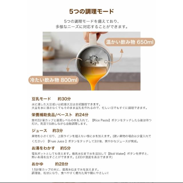 豆乳メーカー 一台五役 豆乳機 豆乳マシーン 静音設計 乾燥大豆対応 自動調理ポット 豆乳ブレンダー 自動調理器ミキサー ブレンダー ジューサー スープメーカー