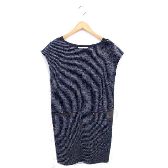 【中古】アンタイトル UNTITLED ワンピース 総柄 ロング ボートネック プルオーバー フレンチスリーブ 半袖 2 紺