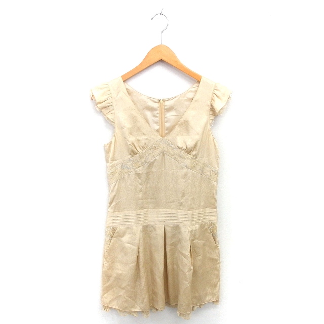 【中古】ジルスチュアート JILL STUART ワンピース レース ひざ丈 Vネック キャップスリーブ 半袖 S ベージュ 薄茶