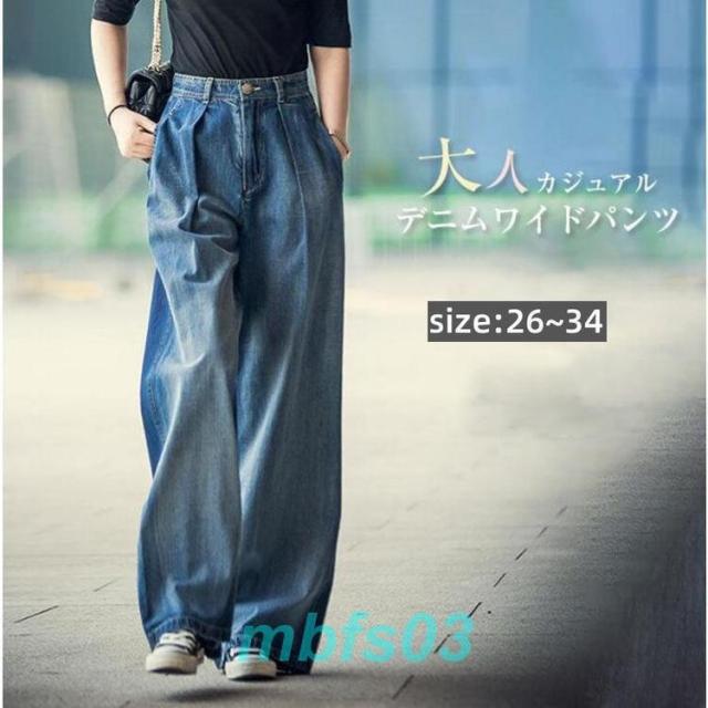 フレアパンツ デニム バギーパンツ レディースガウチョパンツ ボトムス ウエストゴム ジーンズ 大きいサイズ 春秋