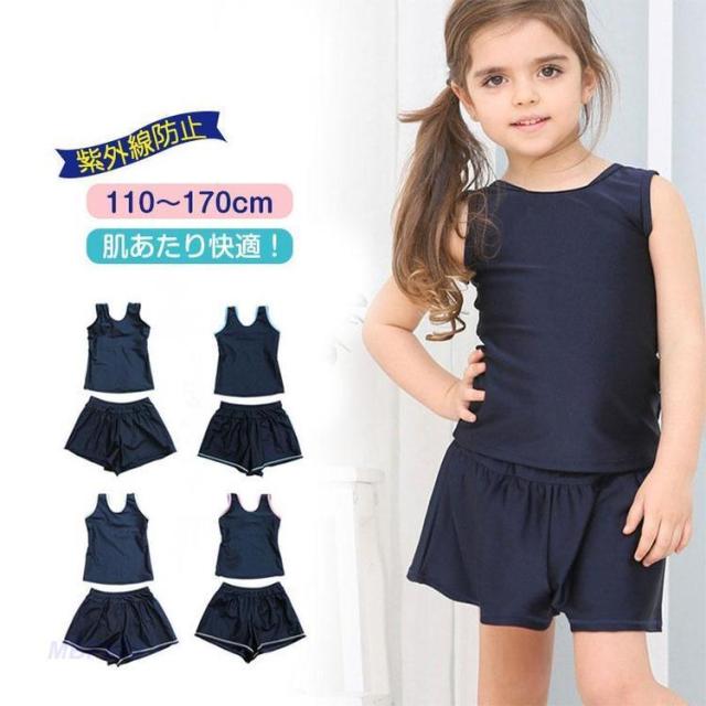スクール水着 女子 水着 キッズ 女の子 セパレート 上下セパレート型 タンキニ上下セット 子供 紫外線防止 110-170cm 女児 UVカット