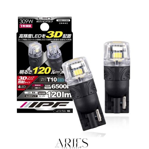 IPF ポジションランプ LED 車用 T10 120lm 6500K ホワイト 12V用 2本入 車検対応 LED特殊配置 直進性+ワイド照射 309W