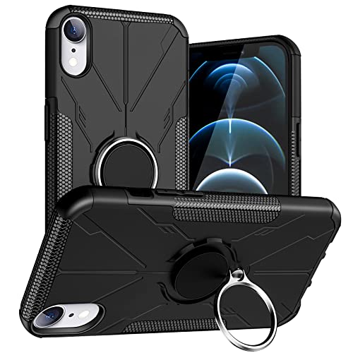 iPhone XR リング ケース付き 耐衝撃 衝撃吸収 シリコン 薄型 スタンド機能 二重構造 tpu pcバンパー 擦り傷防止 アイフォン xr スマホケース 6.1 インチ 全面保護 360°回転 車載ホルダー 指紋防止 おしゃれ 人気 携帯カバー 黒