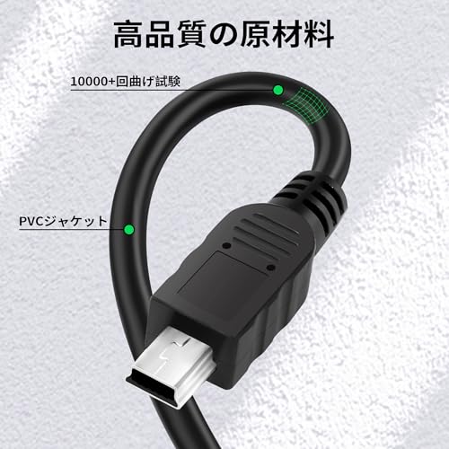 【充電とデータ伝送ケーブル】USB2.0 TYPE-A to MINI-bケーブルは、Wi-Fi 接続よりも高速な最大 480Mpbs のデータ転送速度を提供します。※理論値。プラグアンドプレイ、ドライバーは不要です。最大2Aの充電をサポートします。USB 1.1、1.0 と下位互換性があり、ミニ ポートを備えたデバイスに電源充電を提供します。ご注意:当製品はUSB miniBコネクタです。マイクロUSBポートを備えたデバイスに使用不可です。