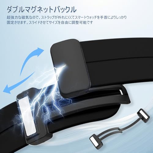 22mm バンド 交換バンド 22ミリ シリコン マグネット 磁気バックル スポーツバンド クイックリリース ストラップ 交換用ストラップ 替えベルト 防水 耐汗性 長さ調節可能 (22 mm ブラック)