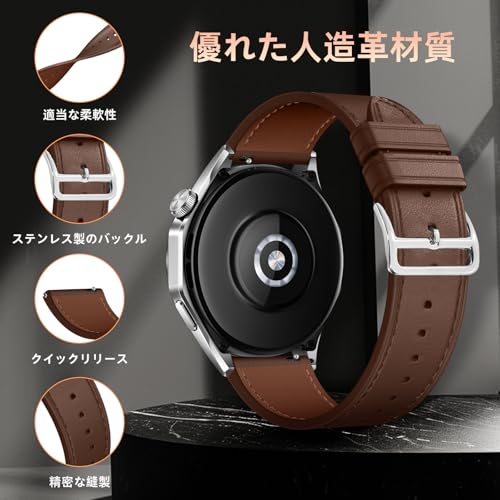 Garmin Forerunner 165 / 165 Music / Garmin Vivoactive 5 20mm バンド レザーバンド ガーミン 交換バンド スマートウォッチバンド 革製ベルト レザー替えバンド ビジネスベルト クイックリリース 長さ調節可能 男女兼用 (20 mm バンド Garmin ブラウン) ...