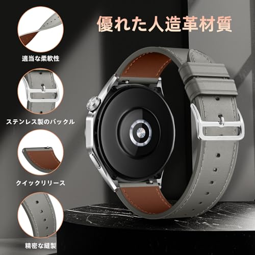 Garmin Forerunner 165 / 165 Music / Garmin Vivoactive 5 20mm バンド レザーバンド ガーミン 交換バンド スマートウォッチバンド 革製ベルト レザー替えバンド ビジネスベルト クイックリリース 長さ調節可能 男女兼用 (20 mm バンド Garmin グレー)