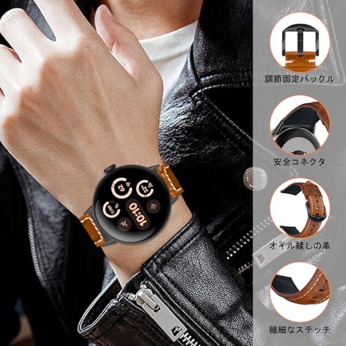 Google Pixel Watch 3 45mm バンド レザーバンド 本革 ピクセルウォッチ3 45ミリメートル バンド ビジネス風交換バンド ビンテージ 男女通 交換ベルト コンパチブル google pixel watch 3 45mm 交換バンド(ライト ブラウン)