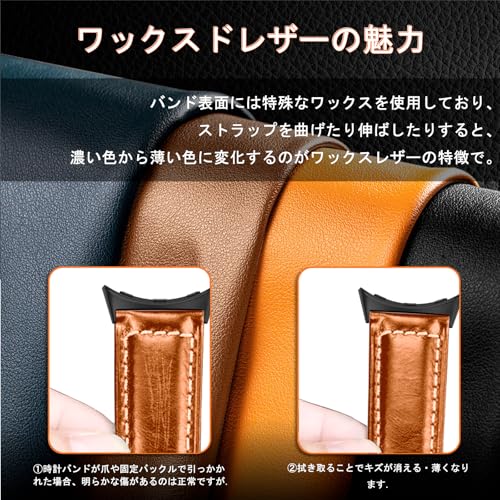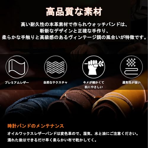 注:オイルワックスレザーバンドは変色革ので、湿気、水と油にご注意ください。
