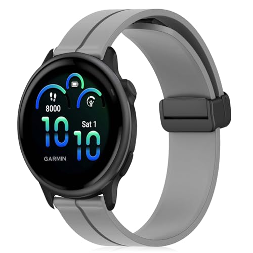 Garmin Vivoactive 6 交換バンド 20mm バンド シリコン マグネット付き スポーツバンド 替えストラップ 交換ベルト 柔らかい 調整簡単 男女兼用 Garmin Vivoactive 6 (グレー )