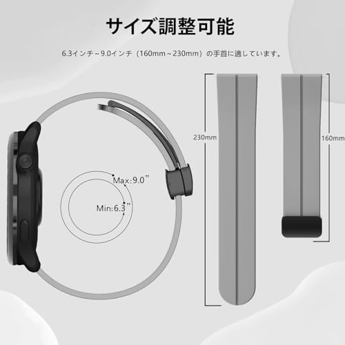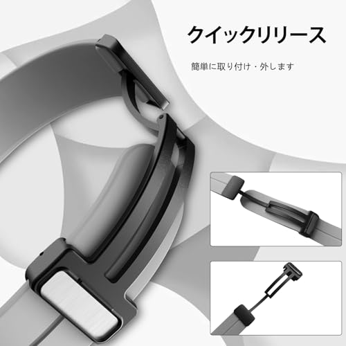 [素材]時計バンドの素材はシリコン素材で作られ、肌に優しく柔軟性に富んでいます。撥水処理が施されており、汗や水に強く、清潔な状態を保ちます。また、取り付けが簡単で、マグネット付きバックルにより簡単に装着・着脱ができます。