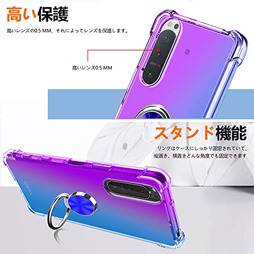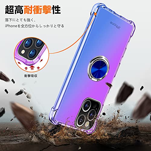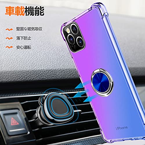 iPhone SE ケース [第3世代] / iPhone SE ケース [第2世代] / iPhone 8 ケース / iPhone 7 リング ケース付き クリア TPU グラデーション アイフォン 8 / se / 7 携帯カバー 耐衝撃 透明 車載ホルダー 一体型 落下防止 防塵 変形防止 全面保護 アイフォン 8 カバー 紫 / ブルー