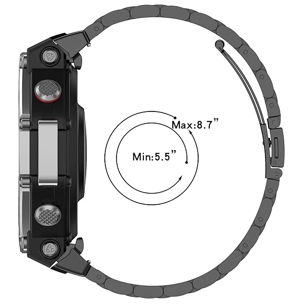 素材と加工:Amazfit T-Rex 3のバンドはステンレス鋼の金属素材を採用しており、精密な機械加工と研磨を施されており、耐食性、耐摩耗性、耐酸性に優れています。肌にやさしく、アレルギーを引き起こすことはありません。質感と光沢度が抜群です。