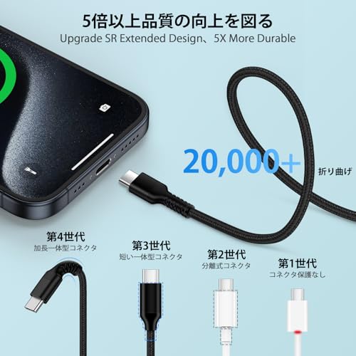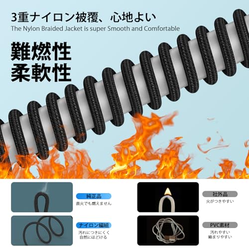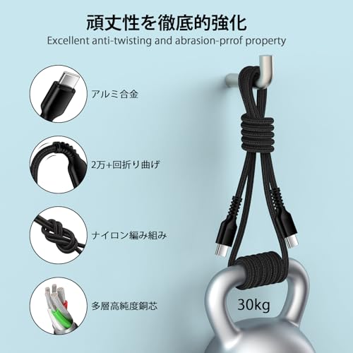 【頑丈で耐久性に優れたデザイン】48本の繊維片から編み込み外装と8芯のワイヤー構造が融合した、Type CからType Cへの急速充電ケーブル。CEおよびRoHSの電子安全認証に合格し、適切な標準に準拠してい