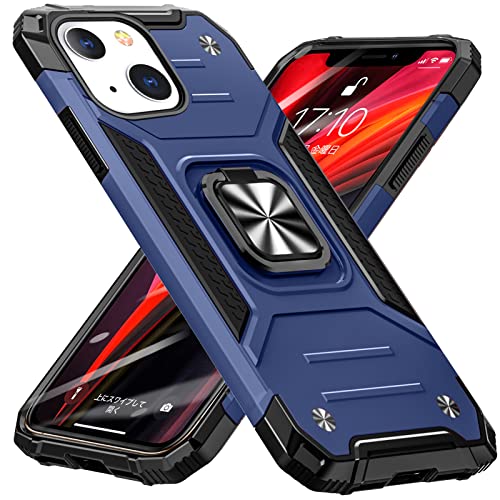 iPhone 14 Plus リング ケース PC + TPU 衝撃吸収 耐衝撃 落下防止 スタンド機能 二重構造 防塵 薄型 軽量 一体型 360度回転 全面保護カバー アイフォン14P リング ケース 青