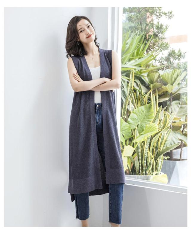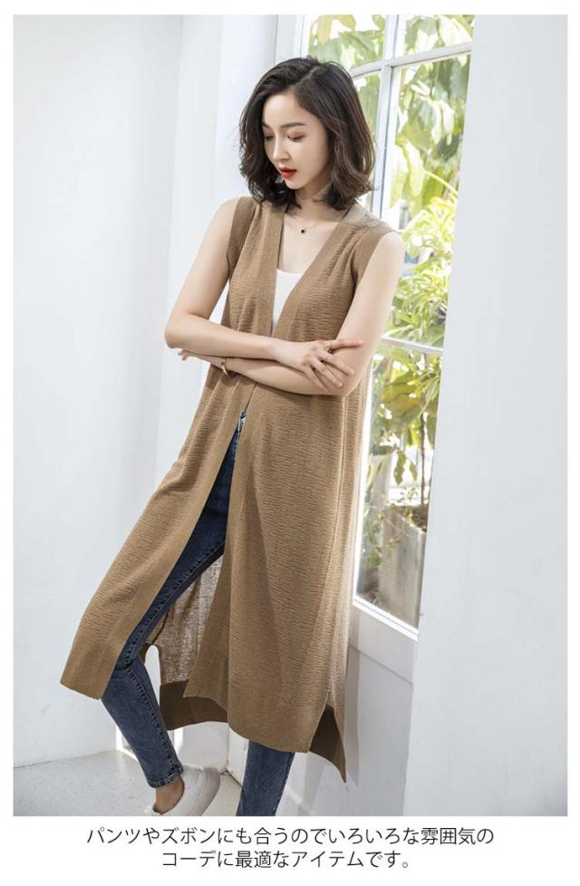 カットソーカーディガン 夏 ロングベスト サマーカーディガン 夏 レディース 麻調 カーディガン ロング丈 ノーボタン ノースリーブ ライトアウター ストリート カジュアル お洒落 体型カバー